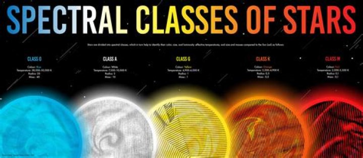 Stars are classified based on the properties of their spectra, primarily the absorption lines present due to metals in the outer layers of the star. These properties are determined primarily by the temperature of the star, but the physical size of the star also plays a role.