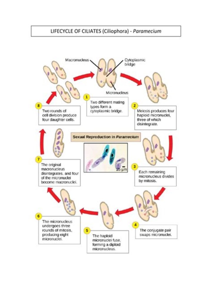 All ciliates share two features: a coating of cilia on their cell surfaces and two types of nuclei within single cells. The two nuclei types in each ciliate cytoplasm are different sizes; they are called the micronucleus and the macronucleus.
